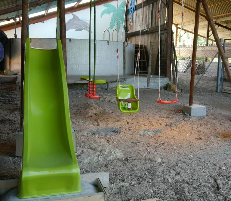 For the older and older children, there is even more space to play and romp around on over 2500 square meters of walled and fenced grounds: You can hide, race, swing, climb the rope, slide down the slide, play table tennis or shoot the ball into the basket.